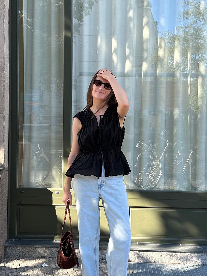 Why this piece works for me? This TOVE Studio dupe was everywhere this summer, but for good reason. It’s a great high street alternative, and 100% cotton. It’s washed rather well, though I may buy some darks detergent or dye to keep it true black. I’ve worn this both casually and more dressed up plenty this year. I put it on and feel great every time. That’s what is important in getting dressed, right?