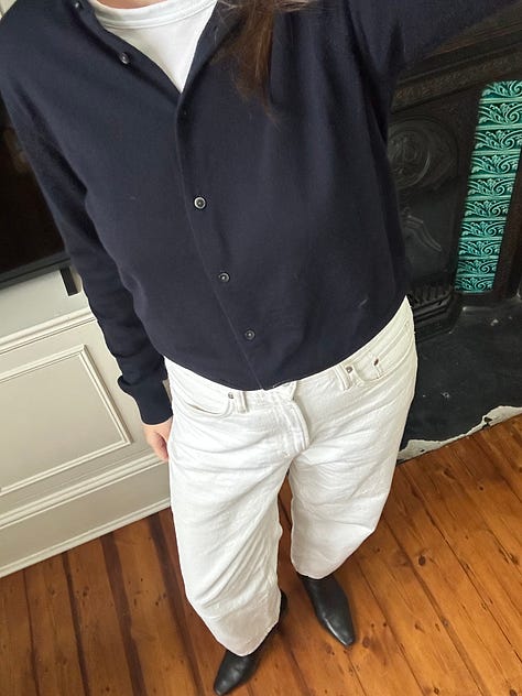 Why this piece works for me? For me, it’s mostly about the fit of these jeans. I sized up twice. The colour is also fun and works really well with the rest of my wardrobe since its quite muted. I couldn’t find a great photo, so here’s a reel… Watch it and you’ll see why they work. Chef’s kisssss.
